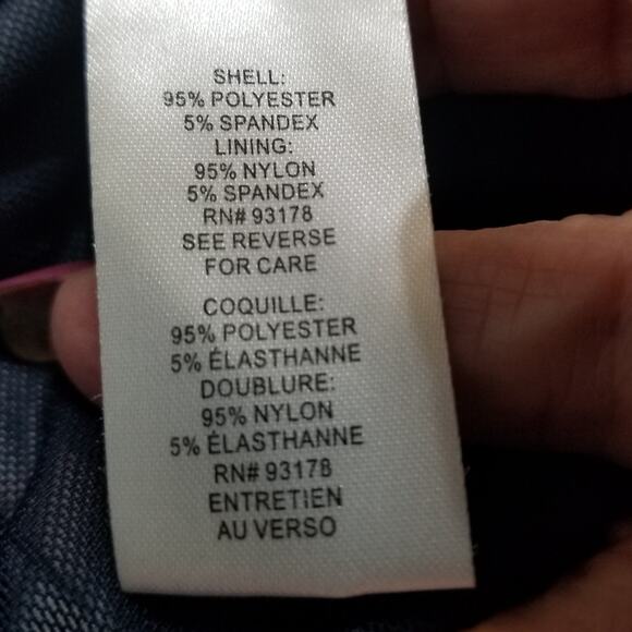Size 4; Material - Shell - 95% Polyester, 5% Spandex; Lining - 95% Nylon, 5% Spandex; Machine Wash Inside Out; Made in China; Navy color Background with Floral Print, Cap Sleeves, Zipper Center Back, Hook & Eye, Tuck at Waist Right Side; Knee Length,