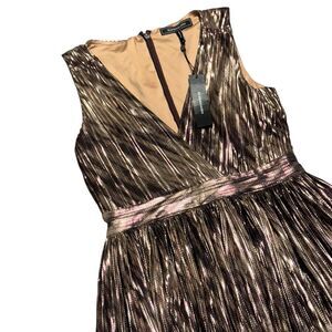 NWT womens BCBGMAXAZRIA purple gold Metallic knee length Dress size medium