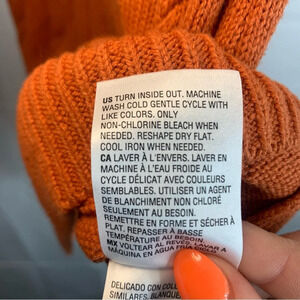 This Bar III sweater dress is perfect for those who appreciate classic knit patterns with a modern twist. The dress features intricate cable knit detailing that adds texture and depth, while the ruffle accents on the shoulders give it a playful, feminine edge. Crafted from soft, cozy fabric in a rich rust hue, this dress promises both comfort and style. The long-sleeve design makes it ideal for cooler weather, easily paired with boots for a chic autumn or winter look.