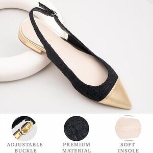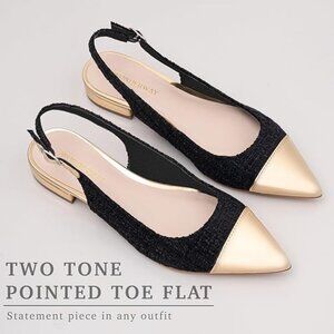 NWoT. Black and Gold Two Toned Slingback Flats. Size 8.