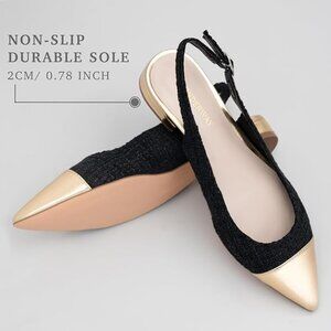 Slingback Design:The slingback flats for women includes reinforced thin laces and an adjustable metal buckle for durability and a custom fit. The open-back design makes them easy to slip on and off.