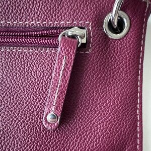 NWoT Genuine Leather Brown Wristlet Clutch Wallet Zipper Striped Satin Interior