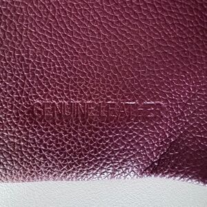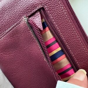 NWoT Genuine Leather Brown Wristlet Clutch Wallet, Zipper Striped Satin Interior