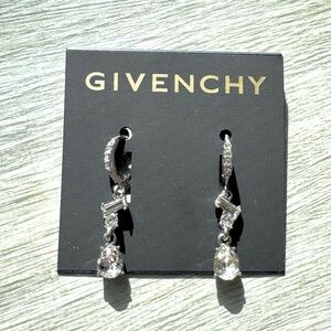 Givenchy glamorous Silver Crystal Drop Earrings for pierced ears, New without tags .