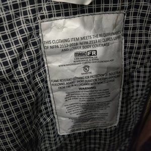 13oz 100% FR Cotton fabric outer shell and all trims are UL certified to NFPA 2112