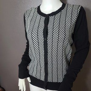NWoT Merona Black and White Abstract Stripe Print Button Up Sweater