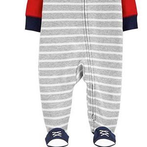 brand new with tags from carters striped background preppy zipper up the front footed sleeper footie jammies 1 piece