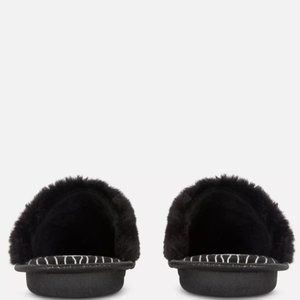 Black Fuzzy Slippers with black glitter trim around the edges - Featuring the Pumpkin King Himself