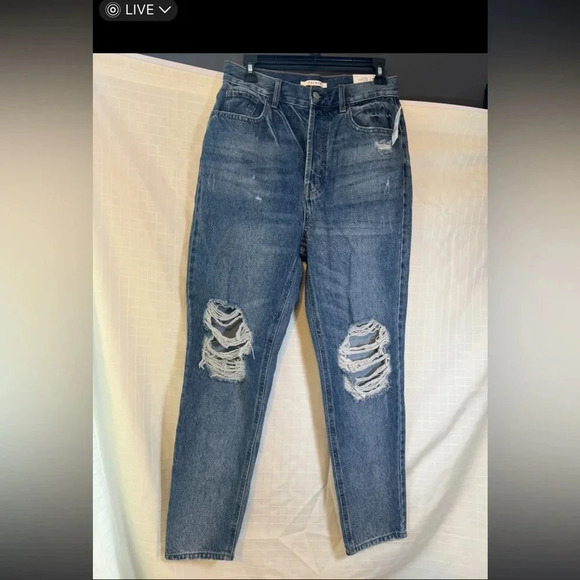 NWt Pacsun Women's Distressed Ultra High Rise Slim Denim Straight Blue Jeans 28
