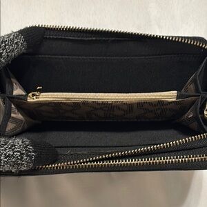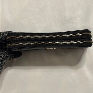 NX Black Wallet with Monogram Pattern and Gold Emblem EUC
