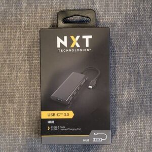 NXT Technologies USB 3.0 Type-C Hub, 4 Ports, Black - Add four USB ports to your USB-C laptop port with this hub. Featuring fast transfer speeds, it supports efficient file copying and smooth video rendering. It has a resilient design that endures up to 10,000 bend cycles.