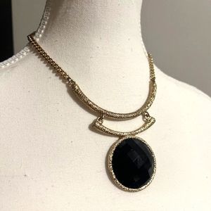 NY Black Round Faceted Rhinestone Pendant Goldtone Chain Statement Necklace