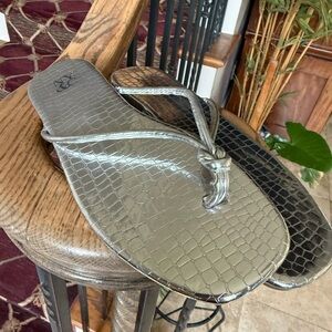 New York and Company ladies silver flip-flop snake skin print very good condition euro 48 1/2