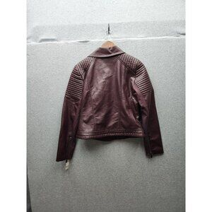 NY & C Womens Faux Leather Moto Jacket Small Size Plum