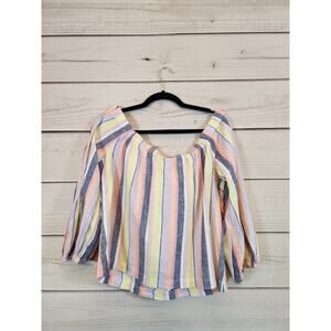 NY& C Women's Multicolor Striped Tie Front Off The Shoulder Crop Top Size Large