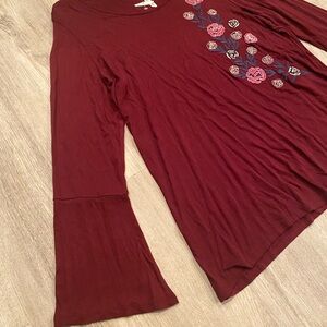 NY COLLECTION beautiful long bell sleeve embroidered blouse size XL