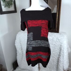 NY COLLECTION BLACK & RED SWEATER DRESS SZ.M EUC.