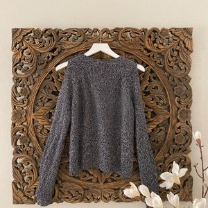 A navy and white knit sweater with side slit sleeves! A perfect chic addition to your closet for this winter season!