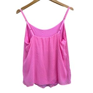 Presenting this women's pink & white polka dot lined tank top from New York & Company. In size Medium.