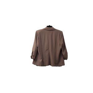 Elevate your wardrobe with this stylish women’s blazer from NY Clothing Co., designed for both comfort and sophistication. This pre-owned, size 2X blazer comes in a versatile tan shade, perfect for pairing with your favorite slacks or jeans. The relaxed fit and single-button closure create a flattering silhouette, while the ruched sleeves add a modern touch. Crafted from a soft blend of 97% polyester and 3% spandex, this blazer offers just the right amount of stretch for all-day ease. Thoughtful details include two faux pockets for a clean, streamlined look. Whether you’re heading to the office or out for a casual evening, this piece is both practical and chic. Add it to your closet today and enjoy effortless style!