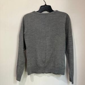 New York & Company gray cardigan with pink and orange argyle design. Button front, classic fit, perfect for preppy and office looks.