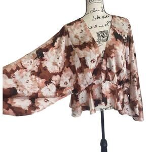 NY & Co. BLOUSE BATWING SLEEVES BROWN CREAM SZ XXL V NECK RUFFLE AESTHETIC CORE