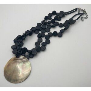 NY & Co Black Beaded Necklace Abalone Shell Statement Pendant Mother of Pearl