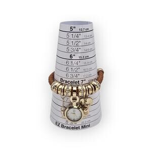 This charming NY & Co bracelet watch blends jewelry and function in the most effortless way. Designed with a rich brown braided leather band, it’s accented by gold-tone charm beads, subtle rhinestone sparkle, and dangling charms — including a sweet heart stamped with “Love” and a signature NY & Co tag.