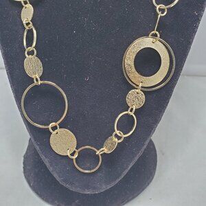 NY & Co Gold Necklace with Circles and Hammered Discs