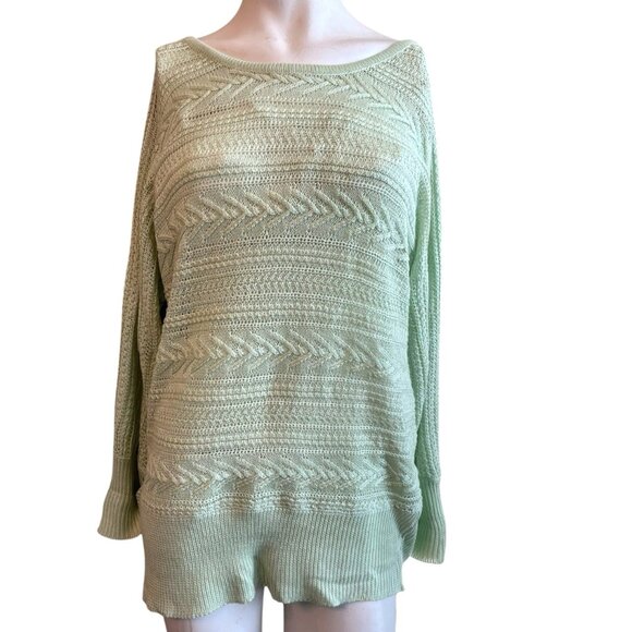 NY & Co Ladies Medium Tunic Sweater Open Weave Light Green Lightweight Pullover