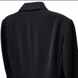 Super silky soft, 3 button front, inside satin feel lining. Dark navy, looks almost black. Dry cleaned and ready for you