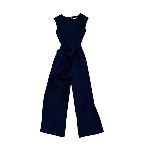 NY & Co. Navy Sleeveless Wide Leg Belted Jumpsuit / Pantsuit in a Size 2