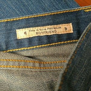 28" waist, 33" inseam, low rise, boyfriend cut.