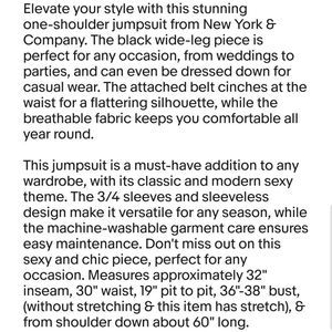 NY & Co Sexy Sleek Wide Leg 1 Shoulder Belted Jumpsuit Black NWT Sz.M $80 retail