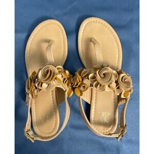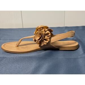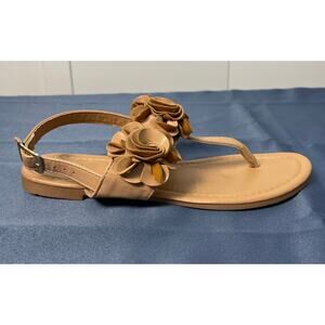 NY & Co. Tan Beige Slingback Sandals with Floret Embellishments Size 6 Pre-owned