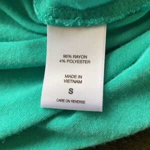 Wear over your workout gear or to dance class. Gorgeous Teal color. Draping crossover hem. Faux-Wrap Sleeveless Top with Cutout details. Very figure flattering. Approximate measurements in photos. Excellent like new condition.