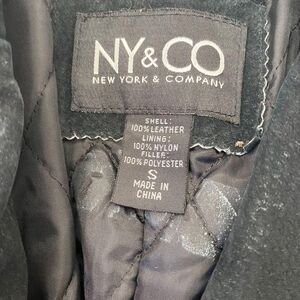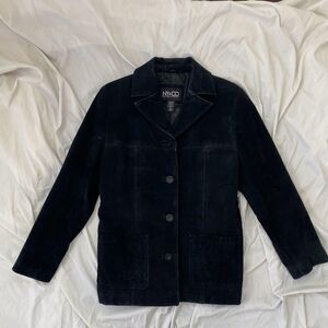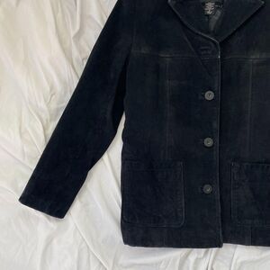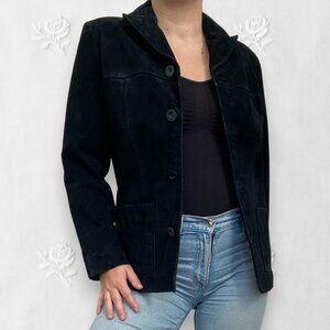 NY & Co Vintage Black Suede Tailored Button Up Elegant Boho Leather Jacket S