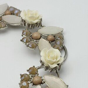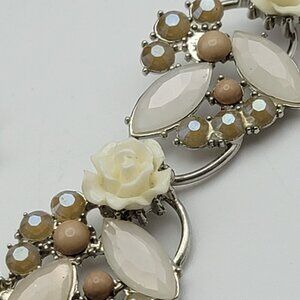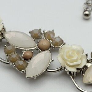 NY & Co White Rose Floral Crystal Bib Necklace Silver Tone 20" Adj. Statement
