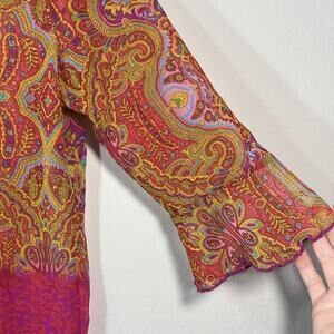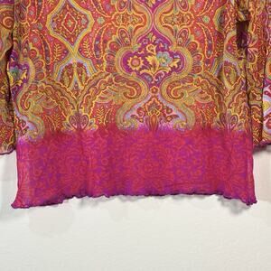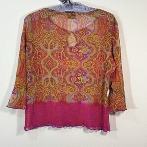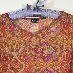 NY & Co Women Sheer Blouse Sz S/M Paisley Retro Y2K Mesh Top Party Boho Chic