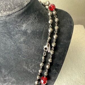In excellent preowned condition. Doubled up for the photos, but is actually hangs approx 20” not doubled up. Wear it multiple ways!