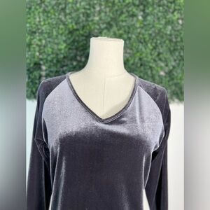 NY & Co Women's Blouse Top Luxurious Crushed Velvet Gray Long Sleeve Size S