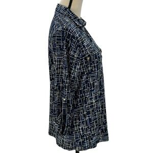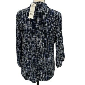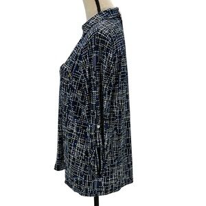 NY Collection 3/4 Roll Tab Sleeve Button Down Blouse - Blue Black White -size PL