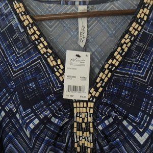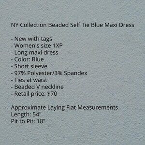NY Collection Beaded Self Tie Blue Maxi Dress 1X Petite