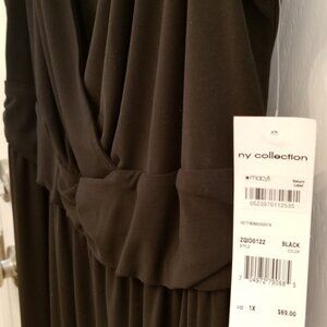 NY Collection Black full length Dress. Dress has a V neck Tank on top. 96% polyester and 4% Spandex. Length 57 inches from top of tank to bottom hem