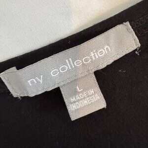 Chic and versatile NY Collection sleeveless top in classic black. Features a flattering draped cowl neckline that adds elegance and a flowy silhouette. Made in Indonesia, size Large.