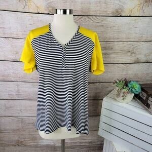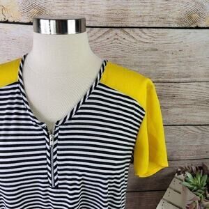 NY Collection Black White Striped Yellow Zipper Closure Pullover T-Shirt Size Extra Large