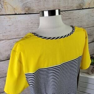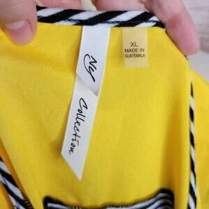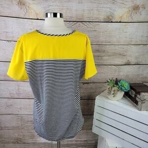NY Collection Black White Striped Yellow Pullover T-Shirt Size Extra Large