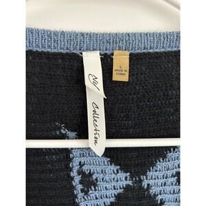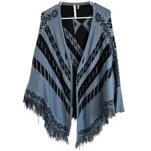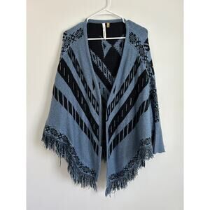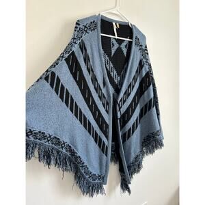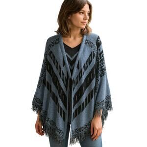 NY Collection Blue Knit Poncho Sweater Aztec Southwestern Size Large