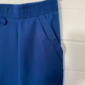 Royal Blue, elastic waist, faux tie front, double pleat pocket detail, cuffed