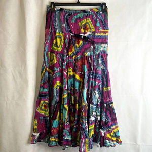 NY Collection Bold Colorful Abstract Bohemian Maxi Skirt Size Medium